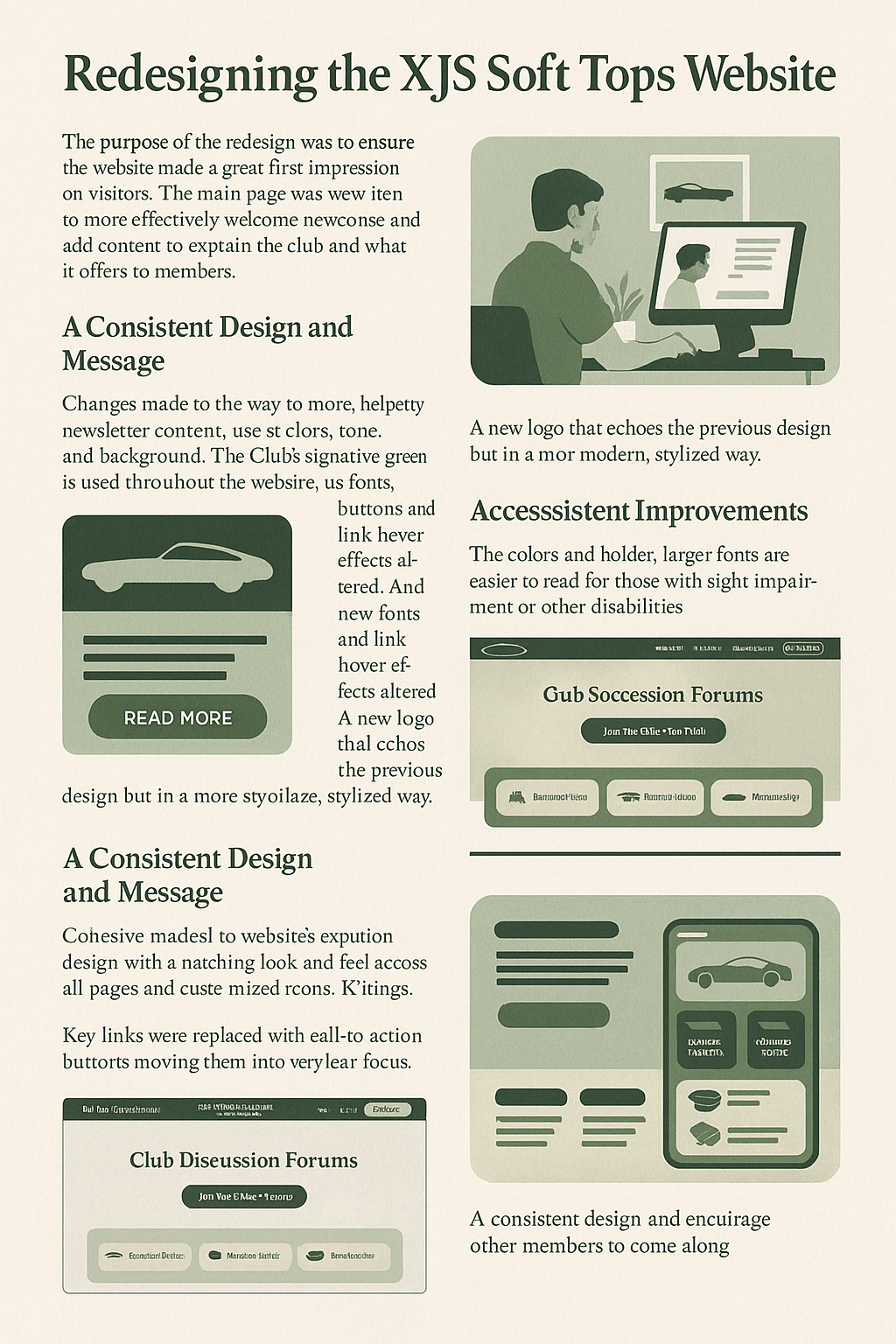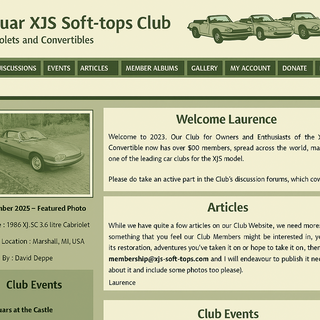 When I first began redesigning the XJS Soft Tops Club website, my goal was simple — to create a space that reflected what makes the Club itself so special — elegance, heritage, and the shared enthusiasm of people who love their cars. Over the past month (October 2025), with the aid of modern technology I’ve completely redesigned the site, modernising its look and feel while keeping its traditional British character. What began as a simple tidy-up turned into a full digital restoration: a careful, detailed rebuild guided by design principles, usability thinking, and an appreciation of the Jaguar XJS soft tops themselves.