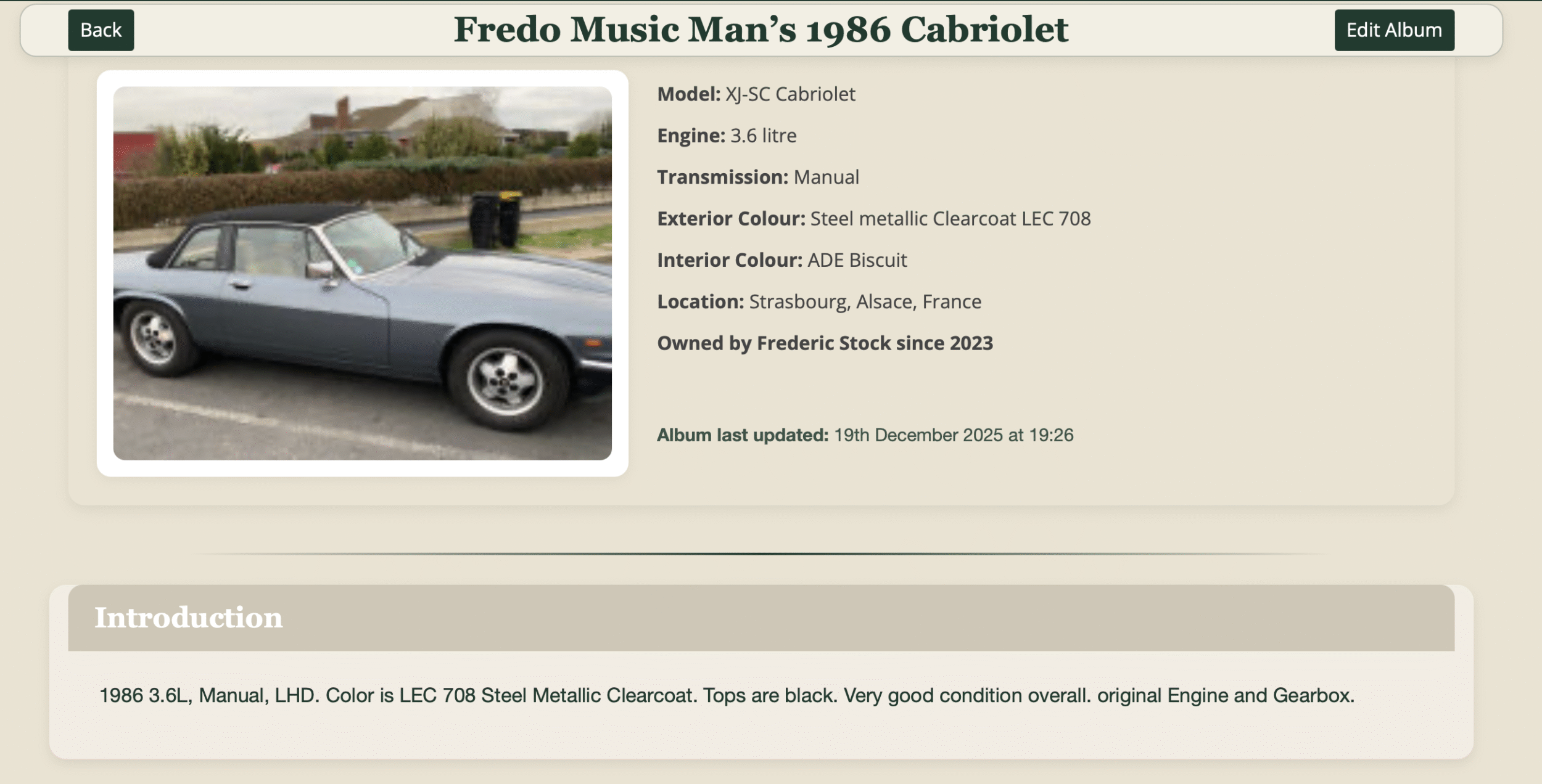 A Car Album is a dedicated space for one car, owned by one member, told in their own words.