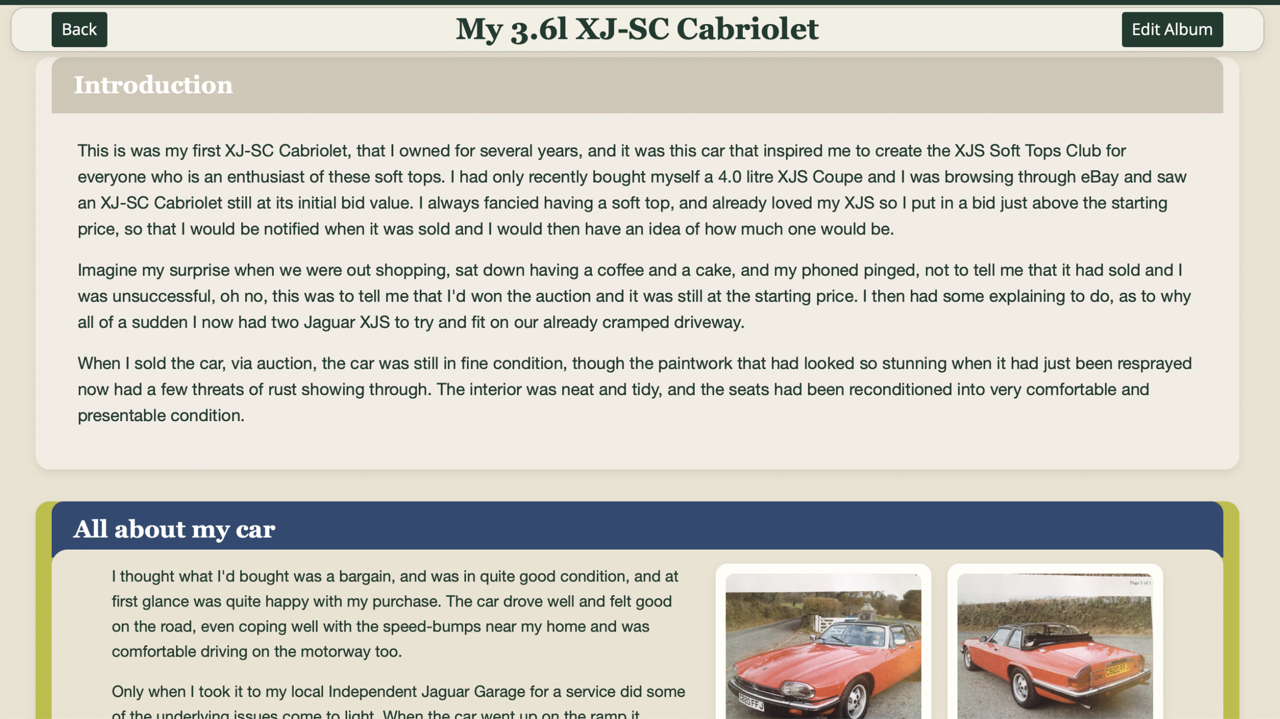 A place to tell the story of your XJS
