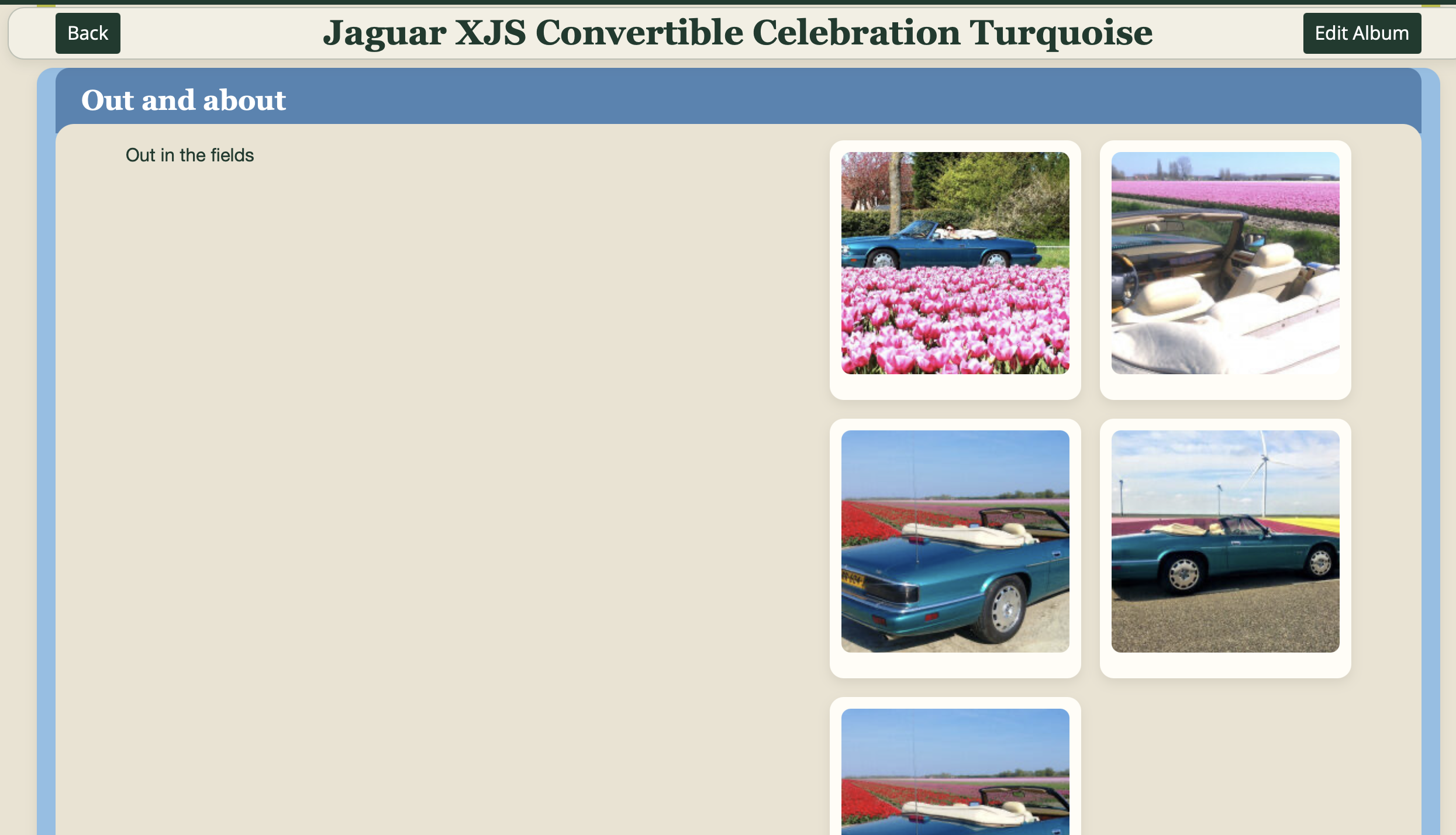 From there, the album unfolds into individual story sections — allowing you to document your car over time,